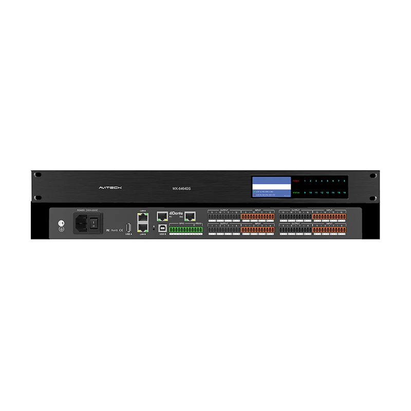 Dante 64 In 64 Out Open Architecture DSP võrguheliprotsessor on FHBAVTEC® uusim ja kõige arenenum mudel, võimsaima DSP-kiibiga, sisseehitatud AFC+AEC+ANC, avatud struktuuriga tarkvara on turul väga populaarne, läbinud enamiku sertifikaate, nagu CE, ROHS ,FCC jne.
