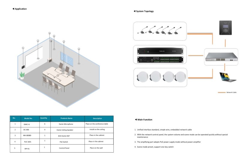 o POE toiteallika integreerimine: tehke koostööd POE lülititega, et realiseerida üheskaitseline toiteallikas + Dante mikrofonide/kõlarite (näiteks Shure MXA seeria) andmeedastus.